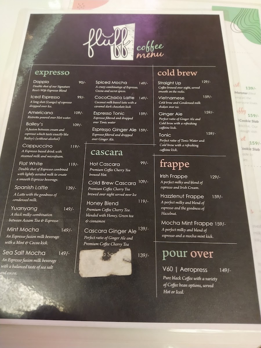Fluff Artisan Cafe Menu